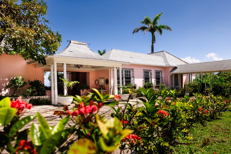 Most families visiting Jamaica stay at a resort. Pimento Hill House is something else entirely. It is a private villa , set in the hills above Montego Bay with views across the valley and out toward the sea. The grounds are lush and unmanicured in the best possible way. There are old stone walls, fruit trees, open-air structures, and a quality of quiet that is genuinely unusual in Jamaica.